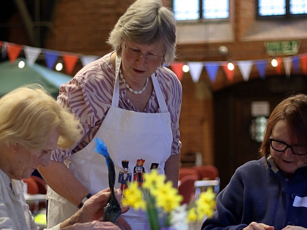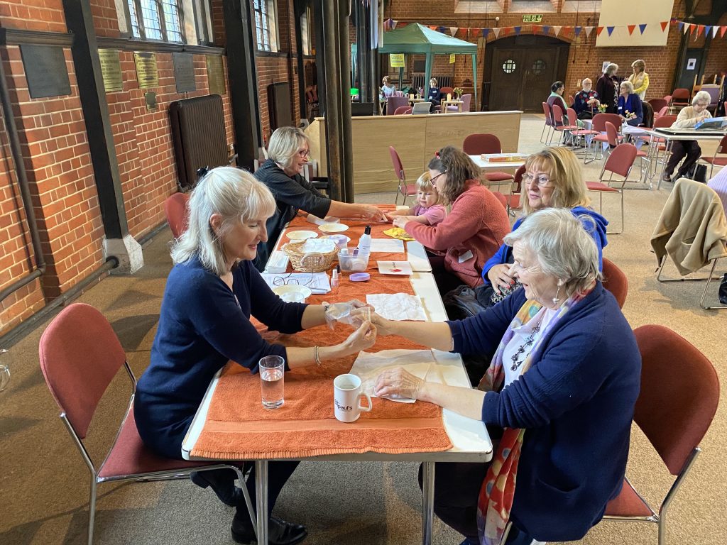 Hand & Nail Care, Arts & Craft tables, Ideas with Flowers, Knit & Natter, Felting, Jigsaw, Board Games, Help with Technology, Special interest tables, Light exercises, Citizen Advice Bureau, local police information desk, and Quiet zones for reading or praying / getting prayed for.